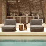 Introducing the award-winning Sunbed Set, featuring two versatile sunbeds designed for ultimate comfort. Perfect for lounging, taking a nap, or basking in the sun with a friend, this set offers a stylish and functional solution for outdoor relaxation. The modular design allows for various configurations, making it ideal for any space.